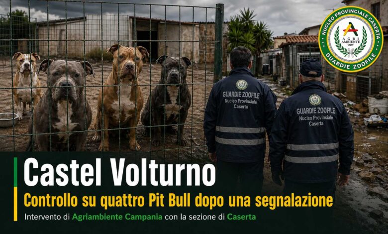Mattinata di controlli sul territorio di Castel Volturno, in provincia di Caserta, dove le Guardie Zoofile Ambientali di Agriambiente Campania sono intervenute a seguito di una segnalazione anonima relativa alla presunta detenzione non conforme al benessere animale di quattro Pit Bull.