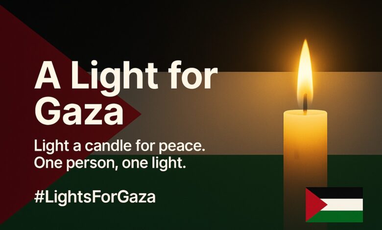 Ogni partecipante può condividere la propria luce sui social con l’hashtag #LightsForGaza, moltiplicando l’effetto virale e invitando altri a unirsi alla fiaccolata digitale.